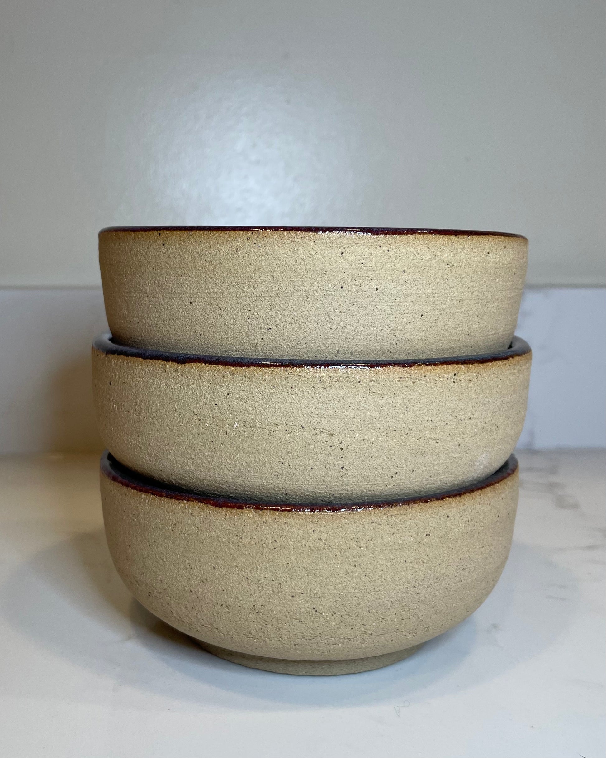 Microwave and dishwasher safe. The clay is fully vitrified, but unglazed areas retain slight porosity. Because of the unglazed exterior, do not leave bowls soaking in water, and always allow them to dry fully before stacking or storing.